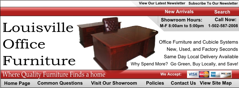 At Louisville Office Furniture we carry a wide variety of new, used, and factory second office furniture to fit any budget. We carry many different manufacturers and the listing of furniture is just a small sampling of what we carry. Please give us a call or email with what you are looking for and we will be happy to help.We are located in the old OK Storage building at Broadway and Barret just east of downtown Louisville. Feel free to view our online catalog or stop by and see what we have to offer. Also check out our new office furniture catalog to the left in the important links section.